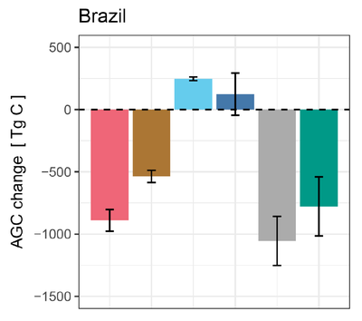 The study tracked inter-annual changes in carbon-rich above-ground forest biomass across the entire Amazon region and incorporated nine countries. Overall the researchers estimate a net loss of 1,300,000,000 tonnes in stored carbon between 2012 and 2019 (Figure 1). The research however sheds important light on the cascading effects of degradation and secondary regrowth on the forest’s overall carbon dynamics.