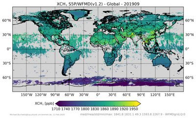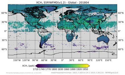 - CH4_S5P_WFMD (v1.2): XCH4 from S5P/TROPOMI retrieved with the WFMD algorithm. Global, Nov 2017 - Apr 2020.