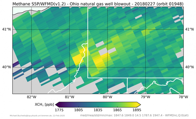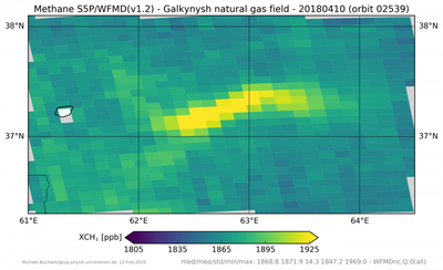 (*) Buchwitz, M., Schneising, O., Reuter, M., Heymann, J., Krautwurst, S., Bovensmann, H., Burrows, J. P., Boesch, H., Parker, R. J., Somkuti, P., Detmers, R. G., Hasekamp, O. P., Aben, I., Butz, A., Frankenberg, C., Turner, A. J., Satellite-derived methane hotspot emission estimates using a fast data-driven method, Amos. Chem. Phys., 17, 5751-5774, doi:10.5194/acp-17-5751-2017, 2017.